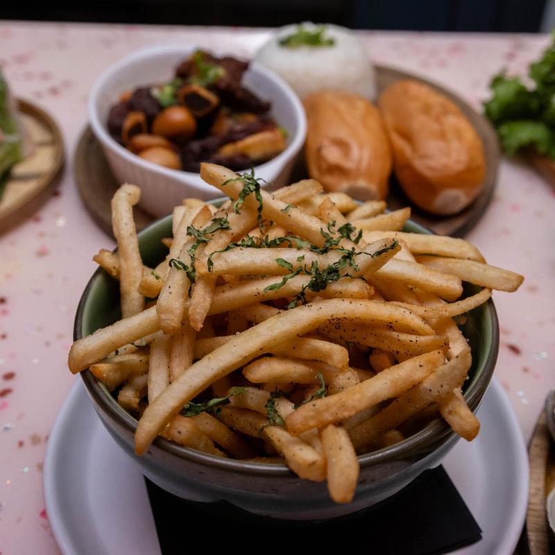 Choice of: Beef or Lemongrass | Chicken, Pork, or Tofu, baguette, butter aioli, cucumber, pickled vegetables, jalapeño, cilantro, side of fries • Short Rib or Oxtail $17.95