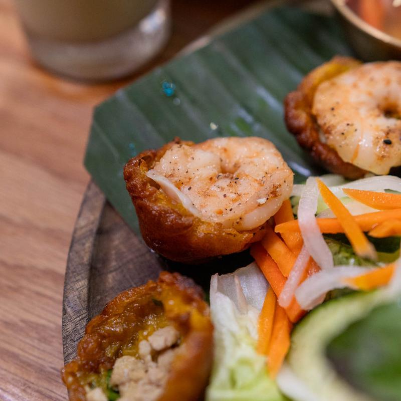 Savory mini pancakes with shrimp and pork | Vegetarian: Tofu & Mushrooms.