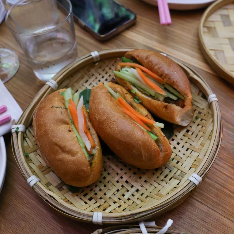 Choice of: Beef or Lemongrass | Chicken, Pork, or Tofu. Mini baguette, butter aioli, cucumber, pickled vegetables, cilantro • Short Rib $15.00