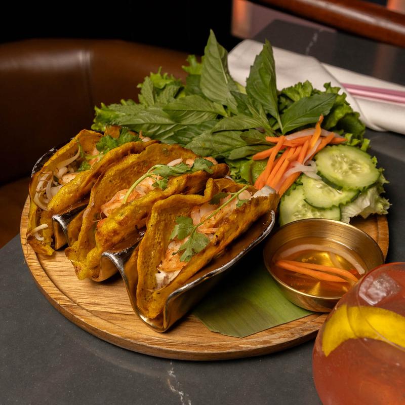 Mini crêpes, tiger prawn, pork belly, cucumber, lettuce, scallions, bean sprouts, herbs • Vegetarian: Tofu & Mushrooms $20.00